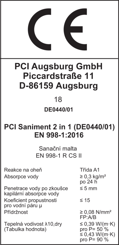 Prohlášení o vlastnostech EN 998-1 (R CS II)