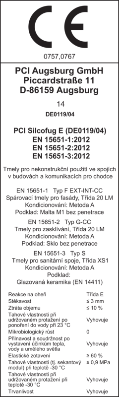 - Barvy tmelu PCI Silcofug® E odpovídají barvám spárovacích hmot PCI.